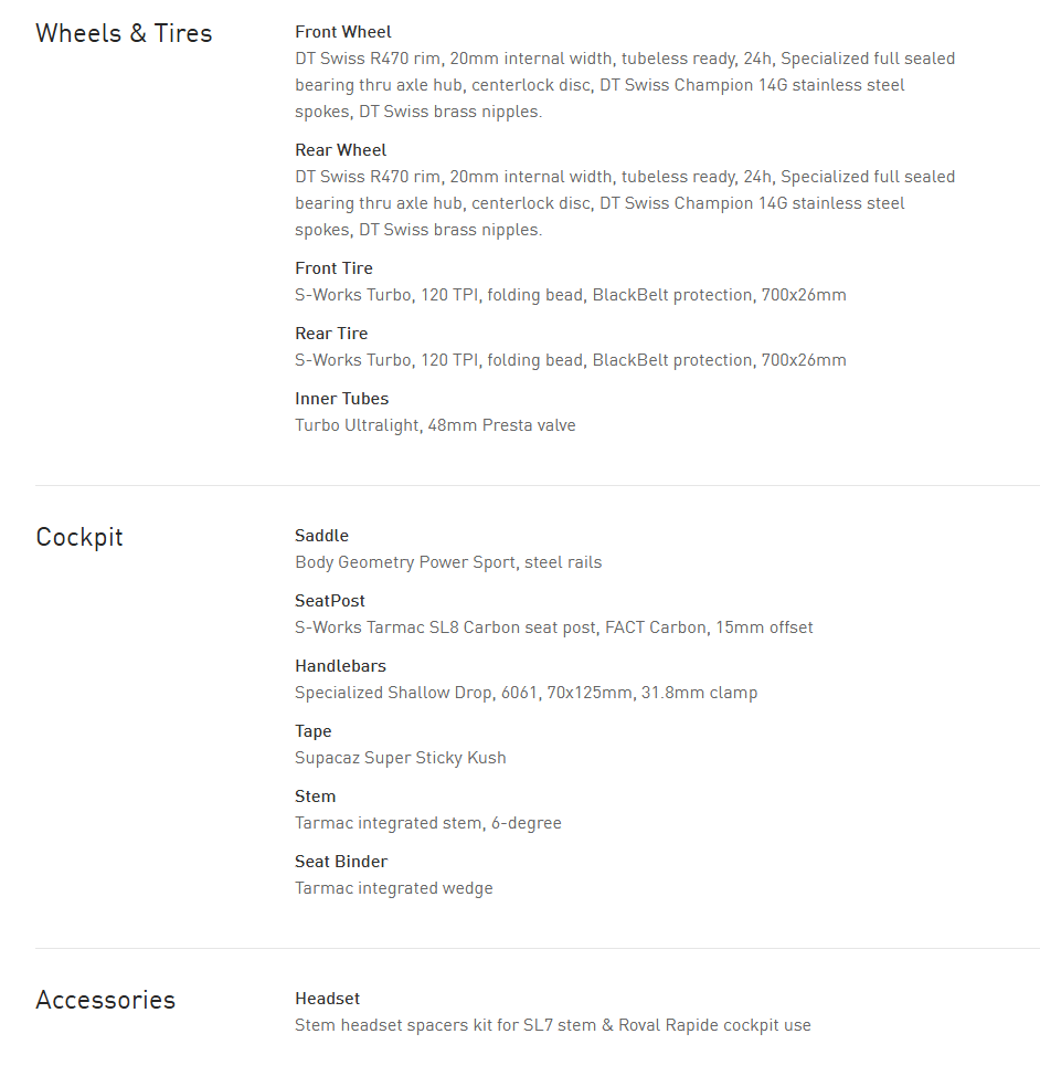 - The Tarmac SL8 Comp Di2 delivers exceptional performance with a full 105 Di2 groupset, DT R470 tubeless ready wheelset, and an SL7 stem with Specialized Shallow Drop alloy handlebars makes for an accessible performance-packed bike.