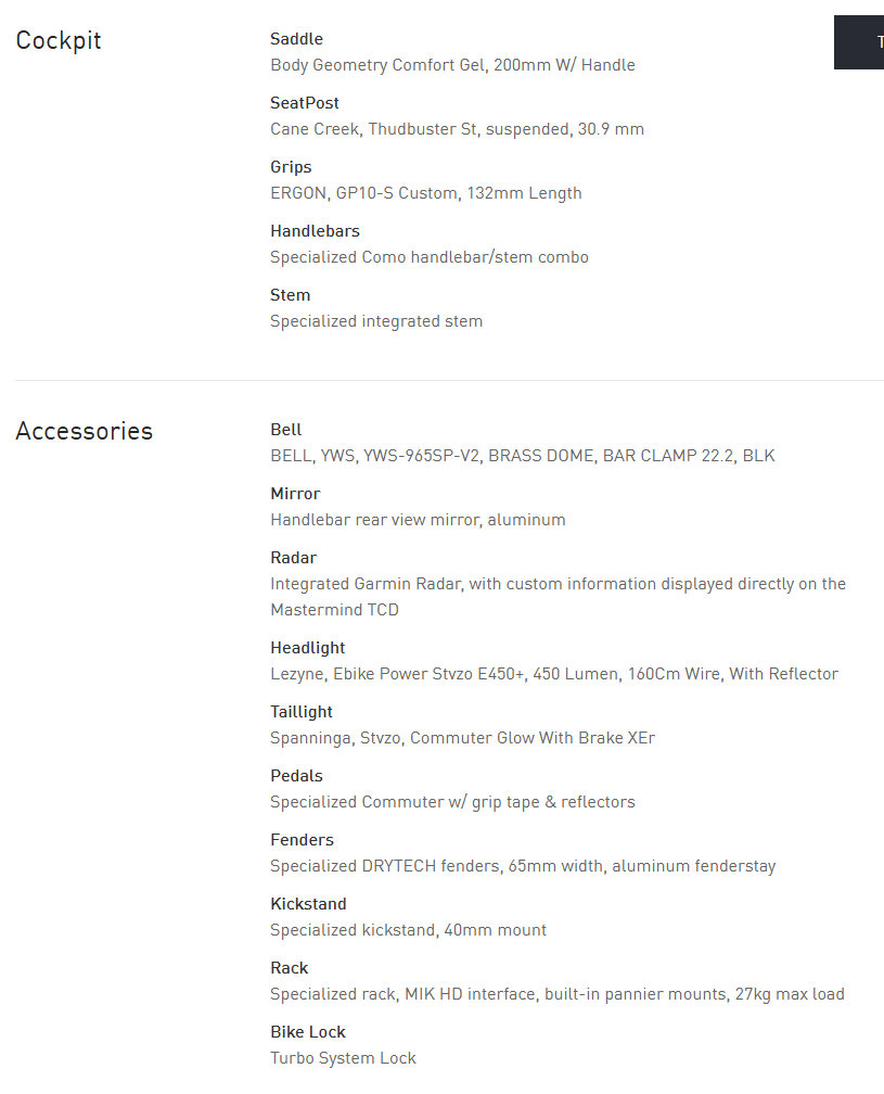 TURBO: The heart of the Como is its Turbo technology, the advanced and integrated electric bike system that delivers an unequaled combination of power, natural feel, anti-theft functions, training tips, and a full-function bike computer.