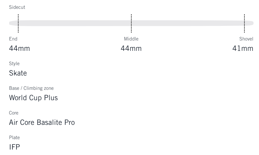 The Aerolite Skate 90 is the new alternative to the World Cup models. If you want to improve your race performance, this extremely lightweight ski with Air Core Basalite Pro construction is ideal. The side shape, base, and grind are from the World Cup in combination with the stable construction. These features deliver high speed and stable steering characteristics when gliding. For a more precise ski selection, the skis are offered in two hardness classes.